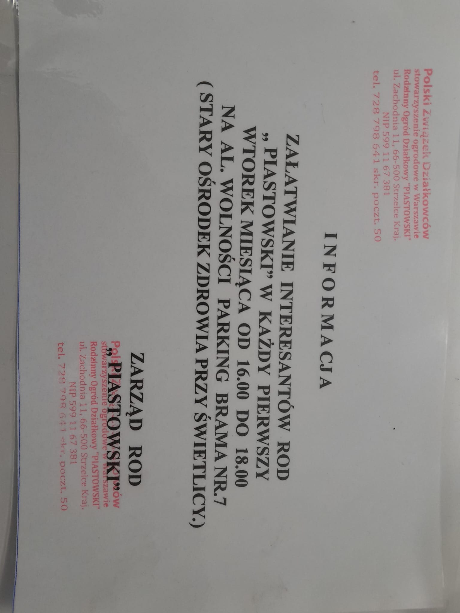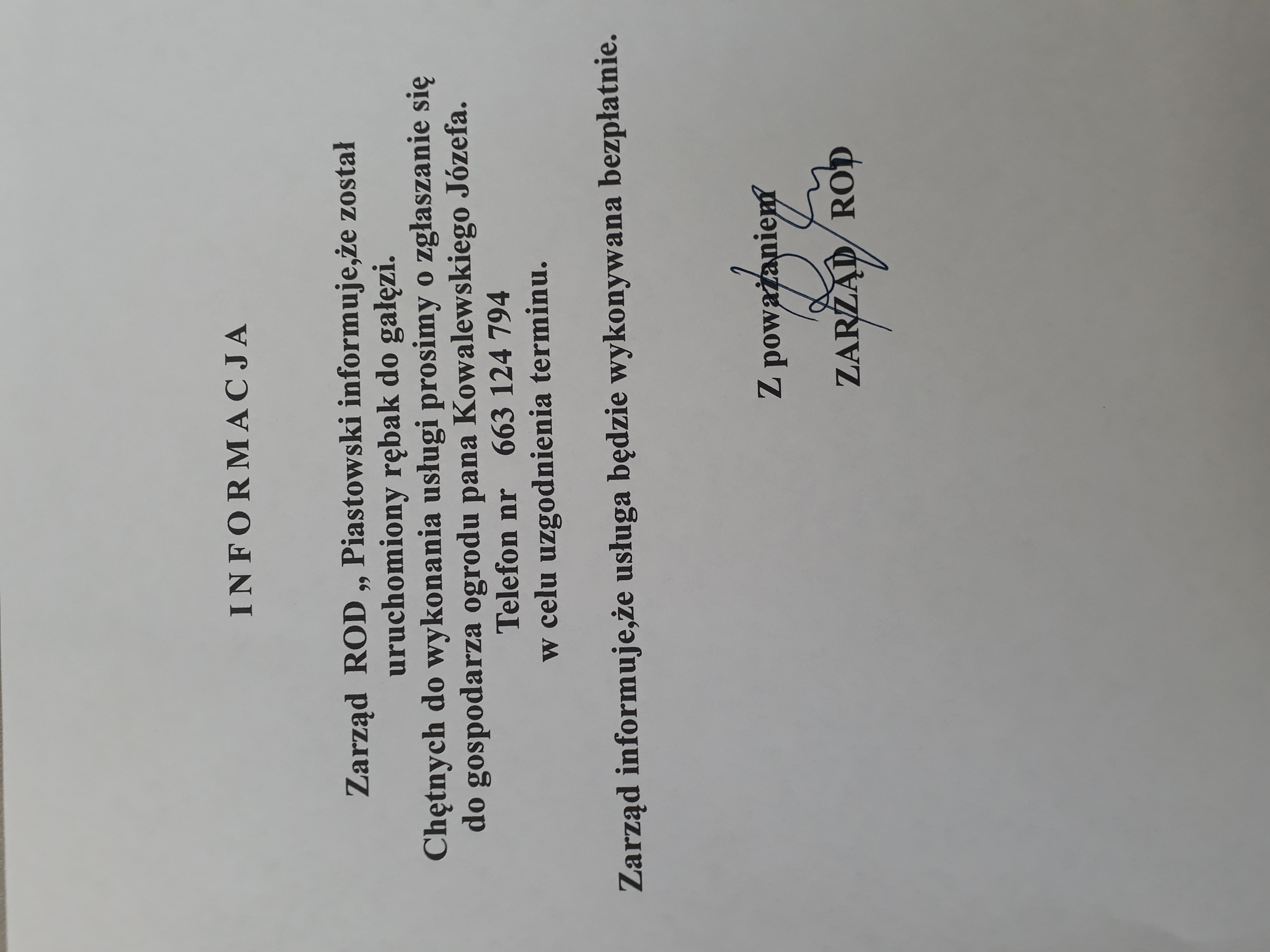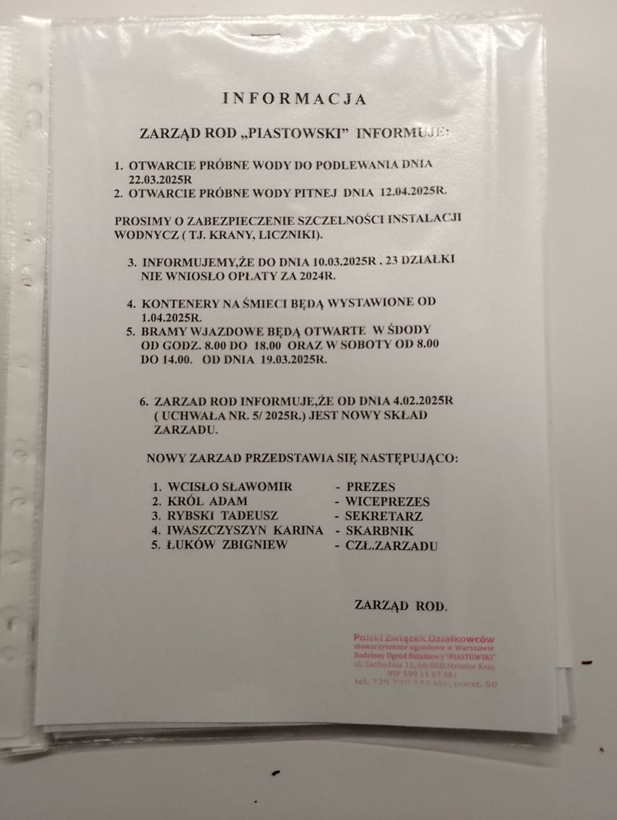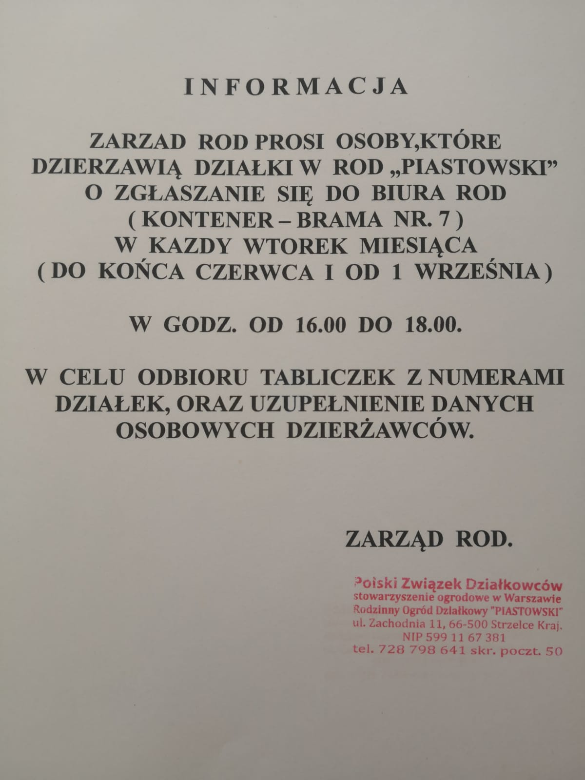 Ważna informacja Zarządu ROD