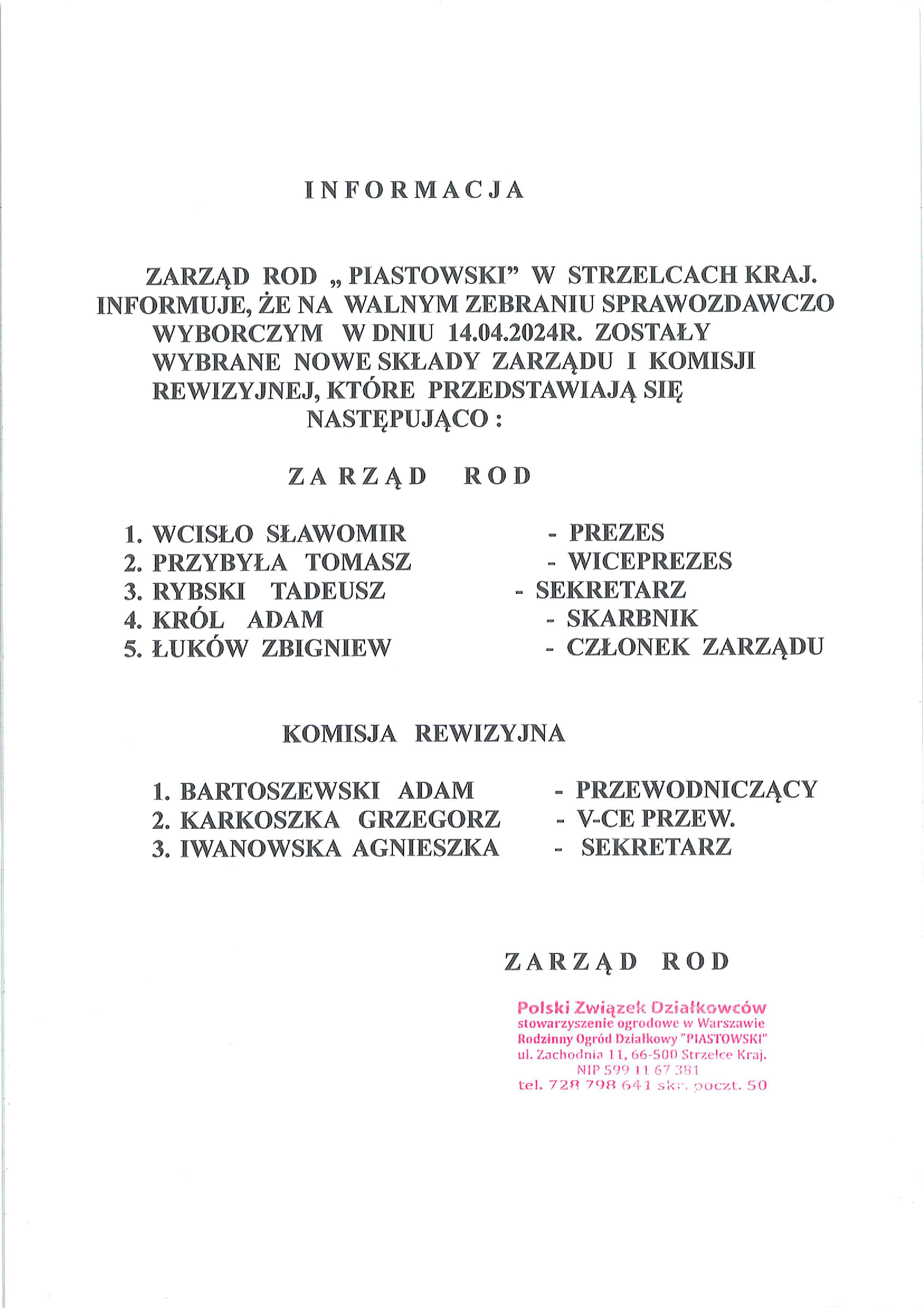 Aktualny Zarząd i Komisja Rewizyjna